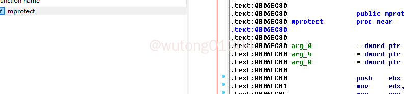 在IDA中进行搜索,可以看到文件中存在mprotect函数: