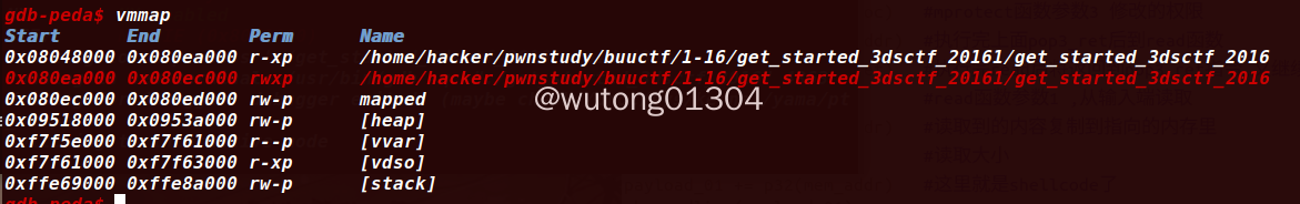 使用gdb进行调试,下断点运行以后,使用vmmap查看内存权限: