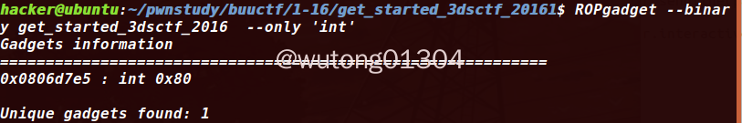 1 | ROPgadget --binary rop --only 'int' |