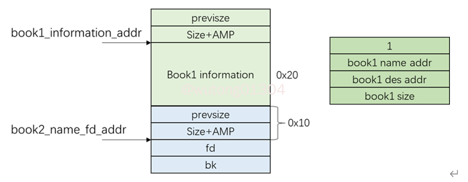 1 | edit(1, p64(1) + p64(book1_addr + 0x30) + p64(book1_addr + 0x1d0) + p64(0x20)) |