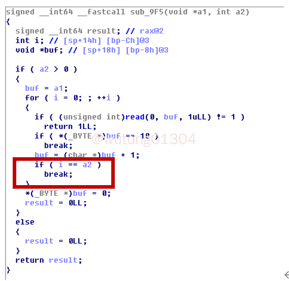 申请两个大小16的chunk,然后在chunk1里面输入16个字符,由于for(i=0;i<=size;i++) 里面的 i<=size,也就是说,会多循环一次,造成溢出。两个chunk相连,此时就会导致第2个chunk的数据被修改。